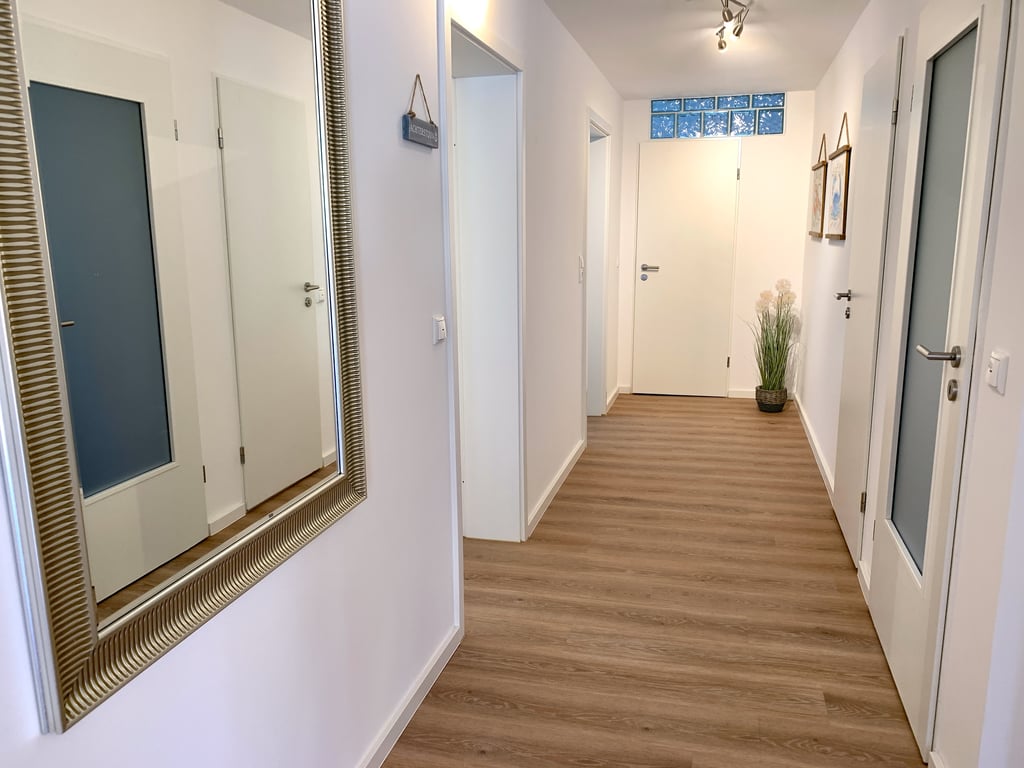 Den Leichtmatrosen entern Sie nahezu barrierefrei. Durch die Garage, mit elektrisch betriebenen Garagentor, kommen Sie zur separaten Wohnungseingangstür. Hinter der Wohnungseingangstür finden Sie einen großzügigen Flur.